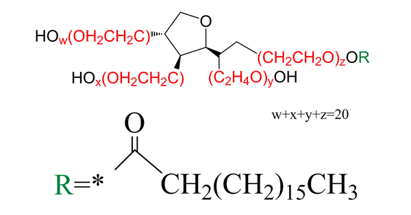 該產(chǎn)品由山梨醇酐單硬脂酸酯與環(huán)氧乙烷縮合而成,具有以下特性:
